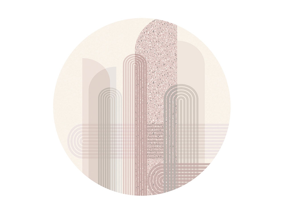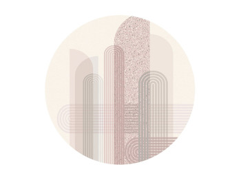 Vliesová, kruhová tapeta s abstraktním motivem.