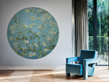 Vliesová, kruhová tapeta. Květinový vzor inspirovaný dílem Vincenta Van Gogha. Zřetelné tahy štětce, plastický efekt.
