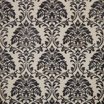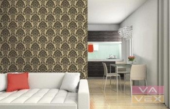 Papírová tapeta na zeď, hnědý podklad s černým zámeckým vzorem.