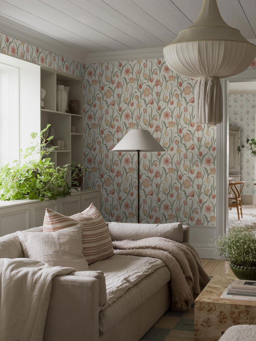 Kolekce tapet Österlen přináší do interiéru lehkost a pohodu švédského léta. Najdete v ní ručně malované květiny, jemné proužky i další vzory v tlumených pudrových odstínech. Tapety působí něžně a přirozeně – skvěle se hodí třeba na chatu, do dívčího pokoje, chodby nebo obýváku, kde chcete vytvořit klidnou a příjemnou atmosféru.