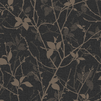 Vliesová tapeta na zeď, strukturovaný tmavě šedý podklad, listy stříbrné a prolisované pololesklé hnědé.