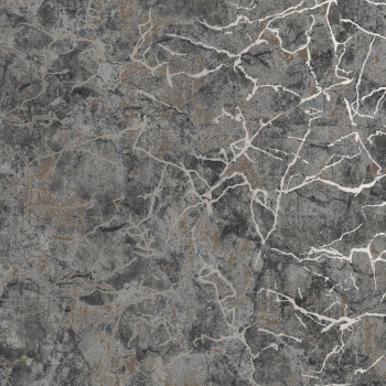 Vliesová tapeta na zeď, plastický podklad v šedo-černých odstínech, místy zlaté odlesky, prolisované kovové mramorování.
