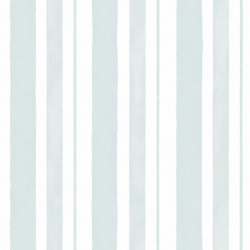 Vliesová tapeta na zeď, pruhy v ostínu pastelově modré / modro-zelené a bílé.