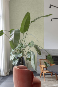 Vliesová tapeta s vinylovým povrchem, imitace hrubší textilie, melanž v odstínech zelené.