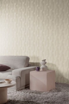 Vliesová tapeta s vinylovým povrchem, jemně plastické textury v odstínech krémové a světle béžové tvoří geometrické vzory.