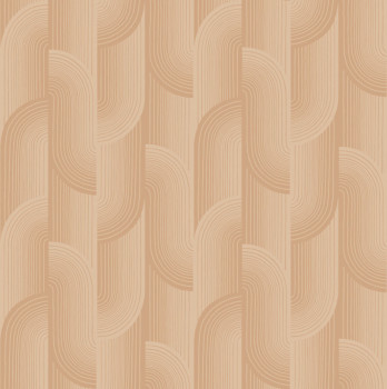 Vliesová tapeta s vinylovým povrchem, jemně plastické textury v odstínech hnědo-béžové / broskvové tvoří geometrické vzory.