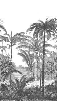 Vliesová fototapeta s vinylovým povrchem, černo-bílý motiv krajiny s palmami.