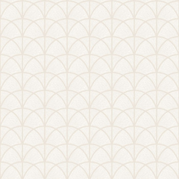 Vliesová tapeta na zeď, krémové linie ve stylu Art Deco, vzor rozptýlených paprsků v bílém slídovém pololesku.