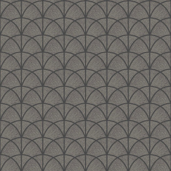 Vliesová tapeta na zeď, černé linie ve stylu Art Deco, vzor rozptýlených paprsků v chladných zlatých tónech.