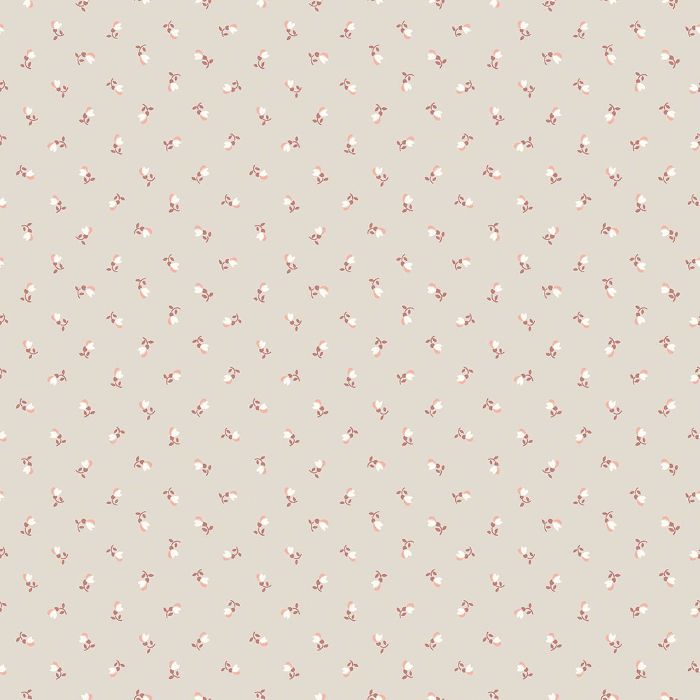 Vliesová tapeta na zeď, béžový podklad, motiv drobných kytiček v odstínech hnědé, růžové a bílé.