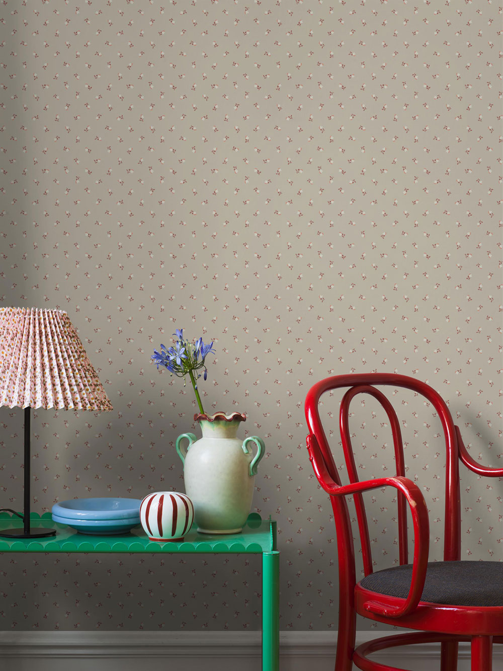 Najdete tu jemné květinové a listové motivy, drobné geometrické vzory i obrázky, které vyprávějí malý příběh. Některé vzory pocházejí z archivu značky Boråstapeter, jiné jsou úplně nové – ale všechny mají společné to, že působí příjemně, hřejivě a útulně.