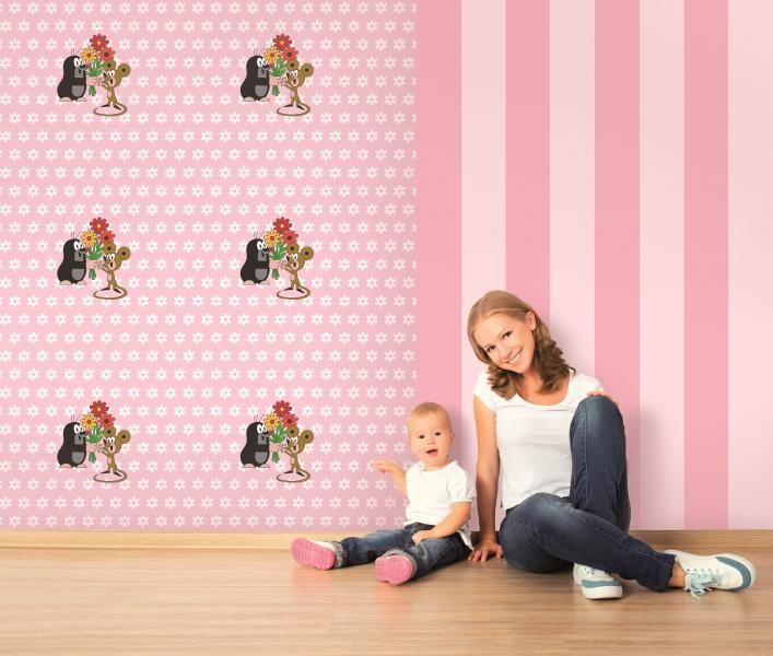 Jednobarevná růžová papírová tapeta na zeď, kolekce Krtek, Vavex.