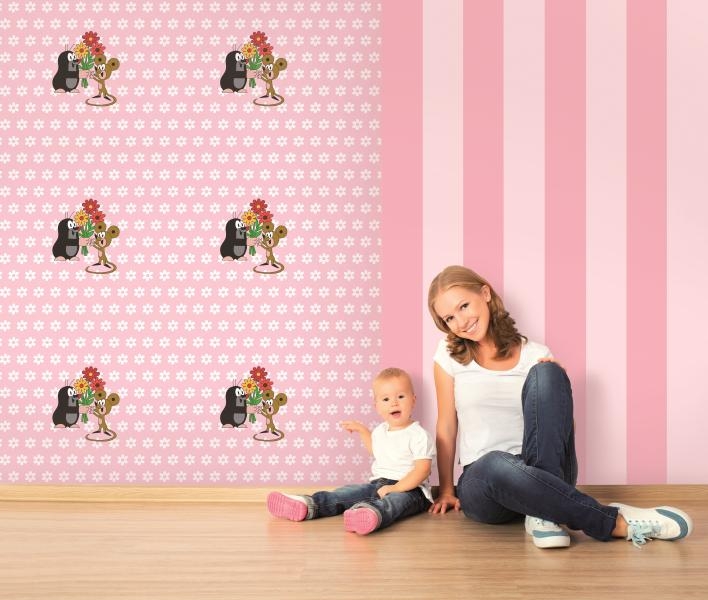 Současné trendy nadčasovým pruhům a proužkům přejí. Jsou kombinovatelné se vzorovými i jednobarevnými tapetami, nebo samostatně dokáží vymezit a zútulnit prostor. Pruhy v růžových odstínech na vysoce kvalitní papírové tapetě na zeď. Kolekce Krtek, Vavex. Kombinovatelné s bordurami a dalšími vzory z kolekce.