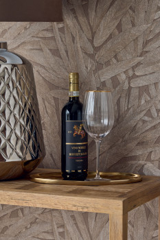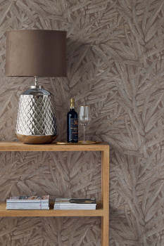 Vliesová tapeta na zeď, vzor listů v odstínech hnědé, jemně plastický podklad.