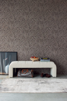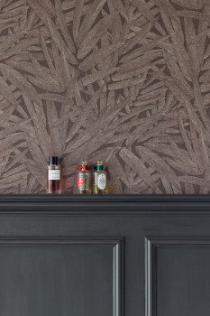 Vliesová tapeta na zeď, vzor listů v odstínech tmavě hnědé, jemně strukturovaný povrch.