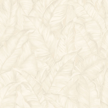Luxusní vliesová tapeta s vinylovým povrchem, plastické listy v odstínech bílé a krémové.