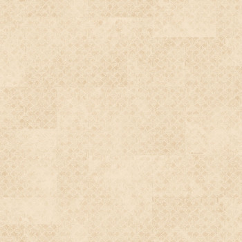 Luxusní vliesová tapeta s vinylovým povrchem, pololesklý podklad v béžových odstínech, drobnější plastický zlato-béžový čtverečkový vzorek, odstíny vytváří plošný geometrický vzor.