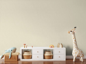 Vliesová tapeta s vinylovým povrchem, odstíny krémové, místy jemné pololesky, hrubší proužková textura.