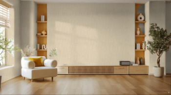Vliesová tapeta s vinylovým povrchem, odstíny béžové, místy jemné pololesky, hrubší proužková textura.