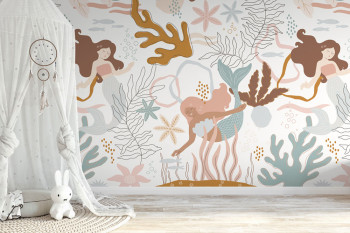 Dětská vliesová fototapeta na zeď, motiv podmořskéhp světa s mořskými pannami.