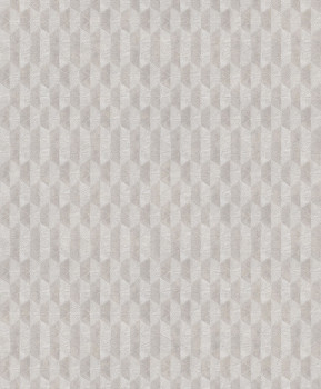Vliesová tapeta na zeď, jemně plastický geometrický vzor v odstínech šedo-béžové a šedo-stříbrné.