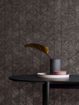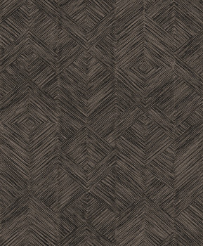 Vliesová tapeta na zeď, plastické linie tvoří geometrické vzory, odstíny hnědé, černé a hnědé s kovovým pololeskem.