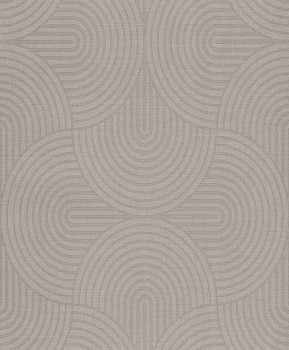 Vliesová tapeta na zeď, grafický obloukový vzor, odstíny pískové / šedo-béžové s jemným pololeskem, textura evokuje látku.