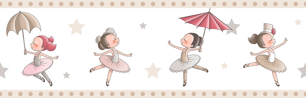 Změňte strohé stěny a vytvořte útulný pokojíček, ve kterém se vaše děti budou cítit dobře. Motivy baletek na samolepící tapetové borduře. Kombinujte se souvisejícími tapetami a látkami.