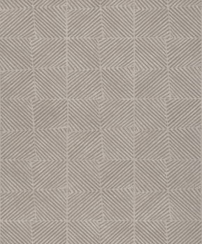Vliesová tapeta na zeď, nepravidelný geometrický vzor v odstínech hnědé a béžové.