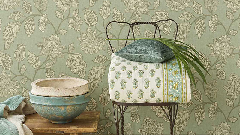 V kolekci najdete krásné květinové vzory, jemné ornamenty i motivy, které připomínají ruční malbu nebo staré potisky. Některé tapety mají strukturu látky, jiné vypadají jako hedvábí nebo přírodně tkaný materiál.
