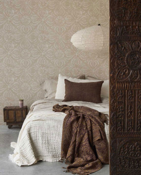 Vliesová tapeta s vinylovým povrchem, hrubší textura, odstíny béžové, design ornamentálních tisků.