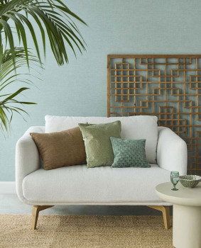 Vliesová tapeta s vinylovým povrchem, látková textura v odstínech tyrkysové.