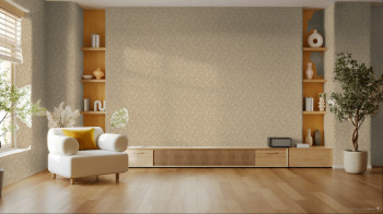 Vliesová tapeta na zeď, jemně plastický ornamentální květinový vzor, odstíny hnědé a béžové.