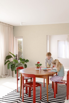Kromě vzorovaných tapet kolekce nabízí i jednobarevné varianty s efektem lněné látky, které krásně ladí s motivy a umožňují sladit pokojík do posledního detailu.
