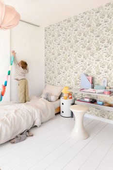 Kromě vzorovaných tapet kolekce nabízí i jednobarevné varianty s efektem lněné látky, které krásně ladí s motivy a umožňují sladit pokojík do posledního detailu.
