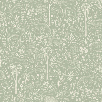 Vliesová tapeta na zeď, zelená, zvířátka v lese, LD3413, Little Dreamers, Grandeco