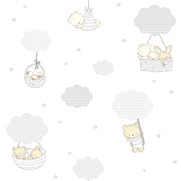 Dětská tapeta s medvídky a mráčky. Změňte strohé stěny a vytvořte útulný pokojíček, ve kterém se vaše děti budou cítit dobře. Dětská papírová tapeta se vzorem pro nejmenší děti. K lepení doporučujeme lepidlo značky Beeline. Kombinovatelné s dekoračními látkami, voály, bordurami a dalšími vzory z kolekce.