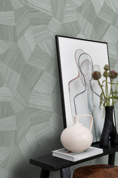 Vliesová tapeta na zeď, grafický 3D motiv v šedo-modré barvě, bohatý hmatový povrch a jemné lesklé efekty dodávají tapetě luxusní vzhled.