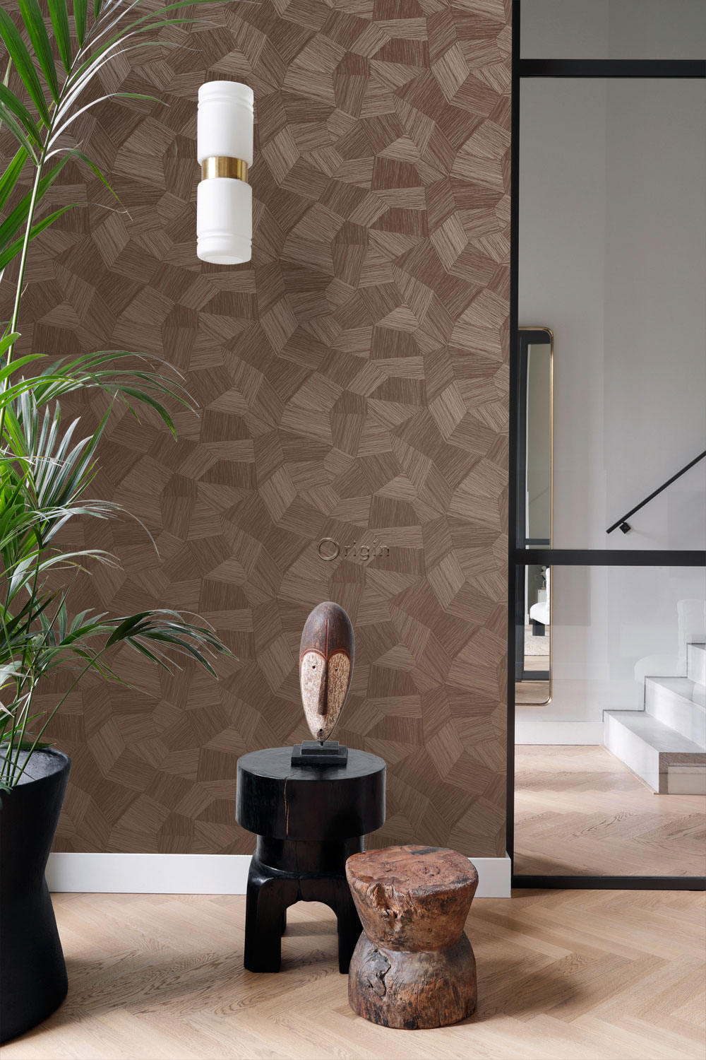 Vliesová tapeta na zeď, grafický 3D motiv, odstíny hnědé, bohatý hmatový povrch a jemné lesklé efekty dodávají tapetě luxusní vzhled.