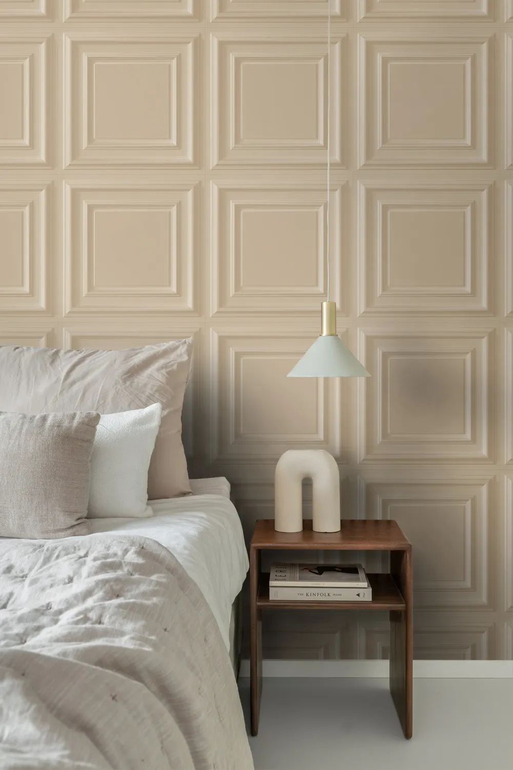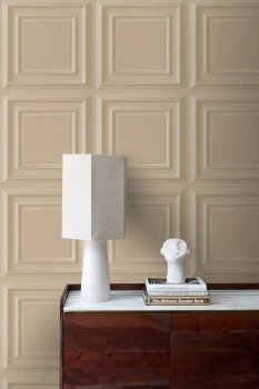Vliesová tapeta na zeď, efekt obložení, béžové odstíny.