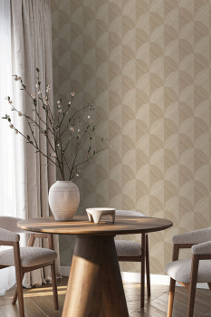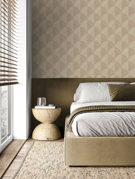 Vliesová tapeta na zeď, grafický 3D motiv v odstínech hnědo-béžové.