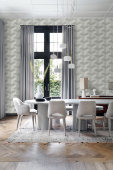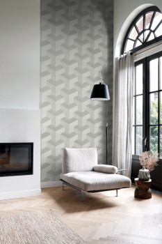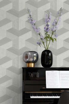 Vliesová tapeta na zeď, grafický 3D motiv v odstínech šedé.