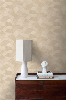 Vliesová tapeta na zeď, grafický 3D motiv, béžová / písková, bohatý hmatový povrch a jemné lesklé efekty dodávají tapetě luxusní vzhled.
