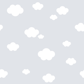 Změňte strohé stěny a vytvořte útulný pokojíček, ve kterém se vaše děti budou cítit dobře. Bílé mráčky na šedé papírové tapetě na zeď. Kombinovatelné s dekoračními látkami, voály, bordurami a dalšími vzory z kolekce.