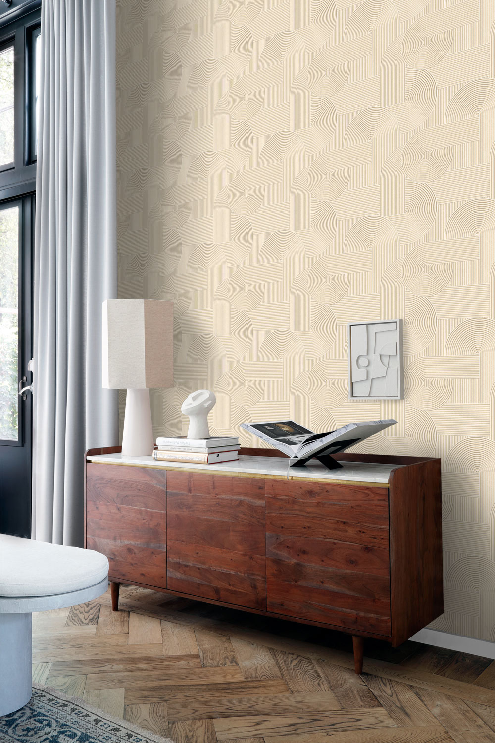 Vliesová tapeta na zeď, 3D grafický vzor v béžových odstínech.