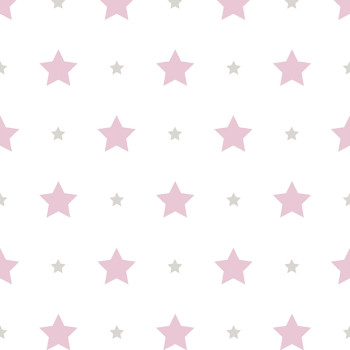 Kombinujte se souvisejícími tapetami a bordurami z kolekce. Šedé a růžové hvězdičky na bílé papírové tapetě na zeď.