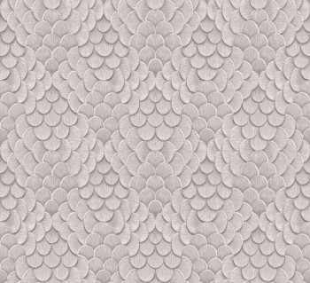 Vliesová tapeta s vinylovým povrchem, efektní 3D vzor, hra barev a stínů v odstínech šedo-béžové evokuje plastické šupiny, jemná textura.
