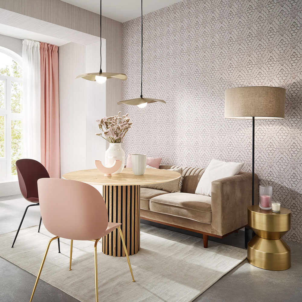 Do tapet promítl svůj nezaměnitelný styl: dokonalé struktury, metalické odlesky, hexagony, imitace látek, květinové motivy i výjimečné zlaté akcenty. Barvy a struktury jsou tím, co tuto kolekci dělá jedinečnou – od přírodních tónů po odvážné odstíny, které dodají interiéru charakter.