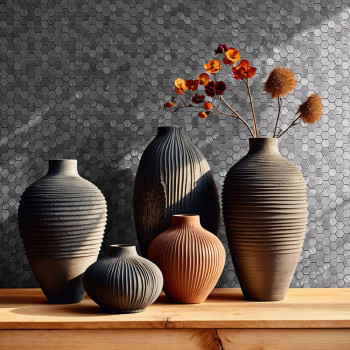 Do tapet promítl svůj nezaměnitelný styl: dokonalé struktury, metalické odlesky, hexagony, imitace látek, květinové motivy i výjimečné zlaté akcenty. Barvy a struktury jsou tím, co tuto kolekci dělá jedinečnou – od přírodních tónů po odvážné odstíny, které dodají interiéru charakter.