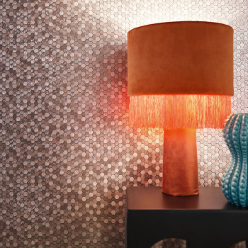 Vliesová tapeta s vinylovým povrchem, kovově lesklé růžové hexagony.